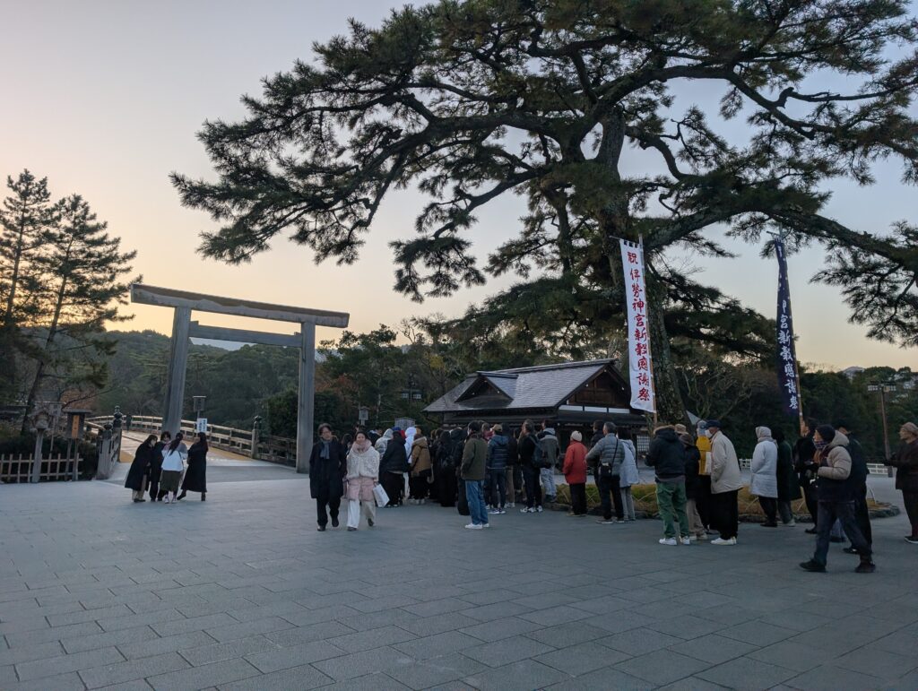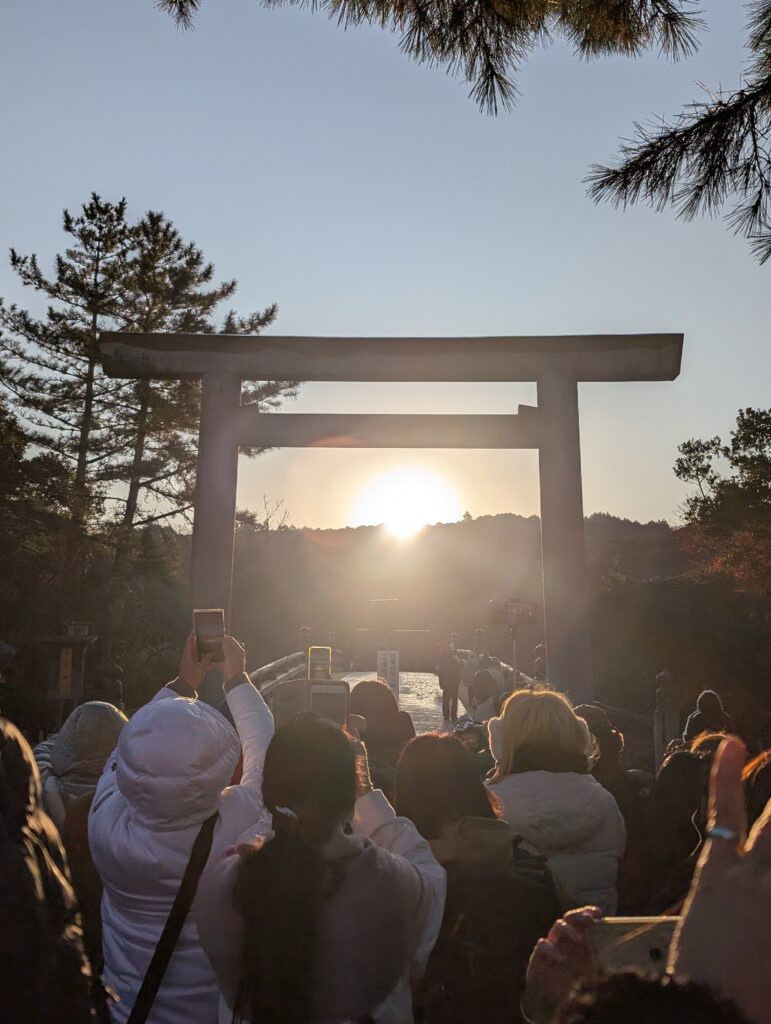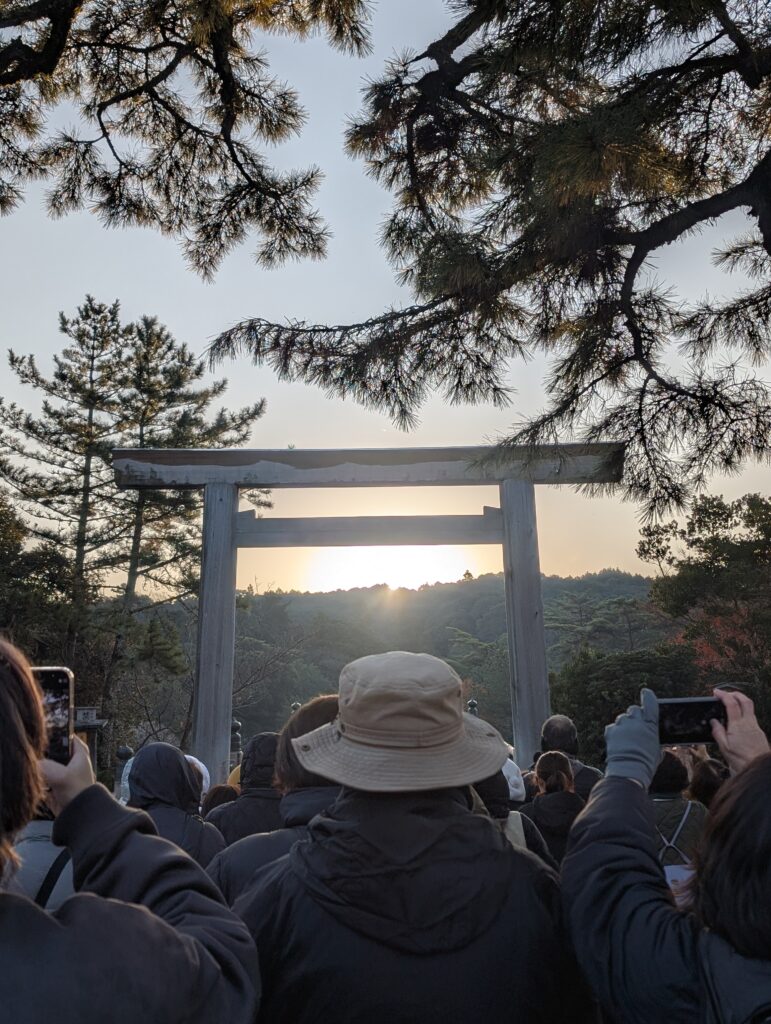 日の出の時間帯は「7時30分ごろ」です。それよりも前に鳥居前に到着しましょう。