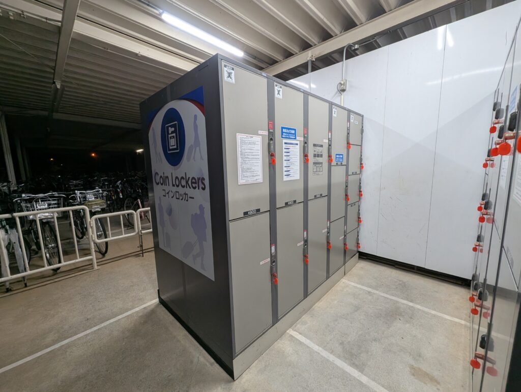 改札出て右手にコインロッカーありました(大中計40個程度)。