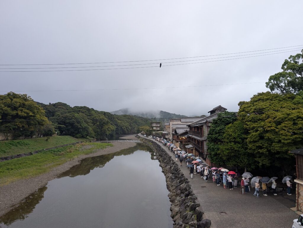 五十鈴川駅と違って赤福前は雨にもかかわらず大賑わい。朔日餅の整理券はすでに完売。